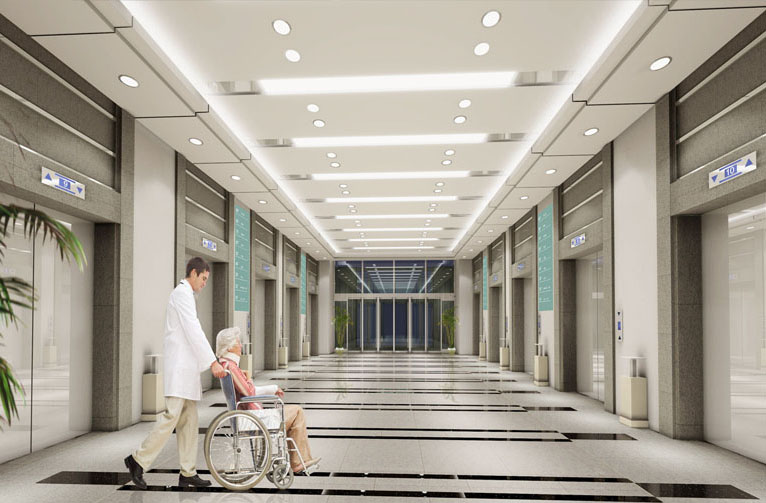 Hệ thống ánh sáng trong thang máy được điều chỉnh sao cho không quá sáng hay tối, đảm bảo thoải mái cho bệnh nhân và người đi kèm.